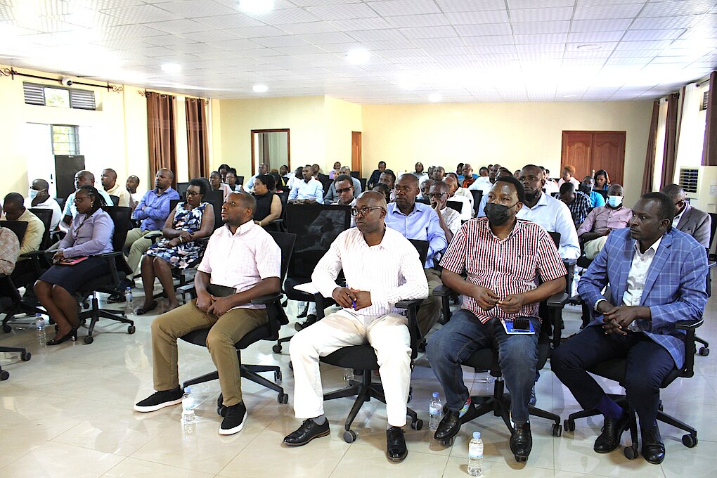 Abakozi ba REB bakurikiranye ikiganiro cyatanzwe na Nyakubahwa Umunyamabanga wa Leta Ushinzwe Amashuri Abanza n’Ayisumbuye.