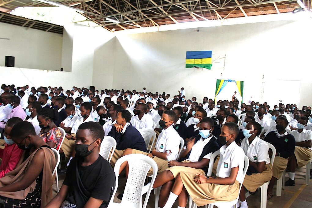 Abanyeshuri ba Lycée de Kiganiro n’abarezi babo bakurikiye ibirori.