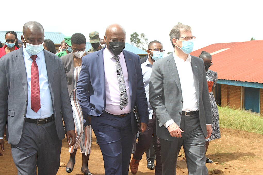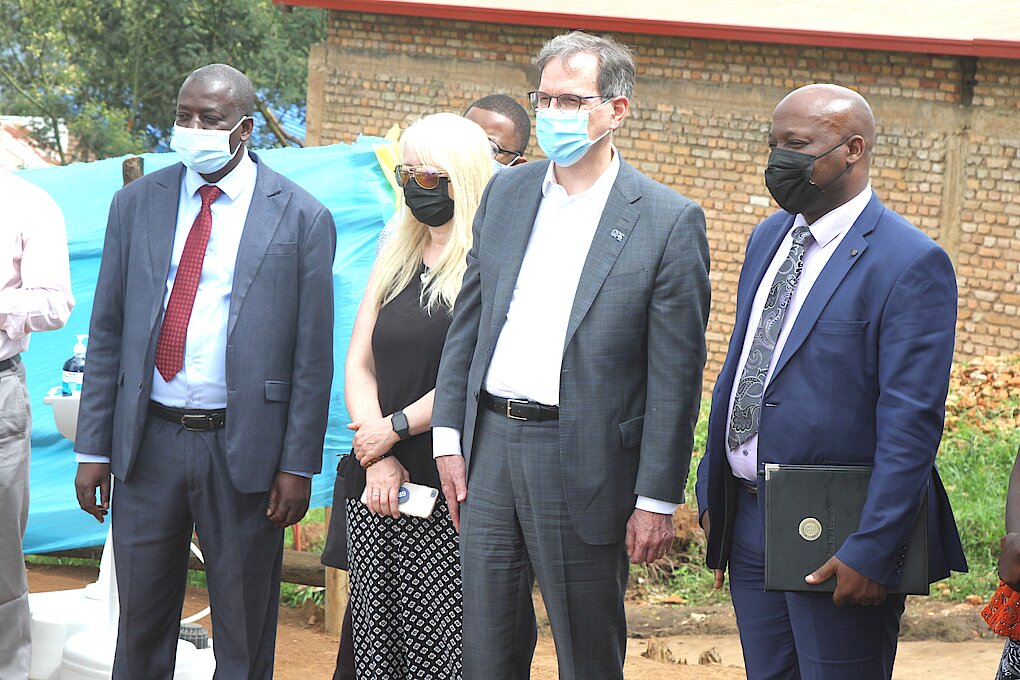 Vice Mayor of Rulindo District in charge of social affairs (left), CEO GPE, Charles North (between) and DG REB, Dr. Nelson Mbarushimana