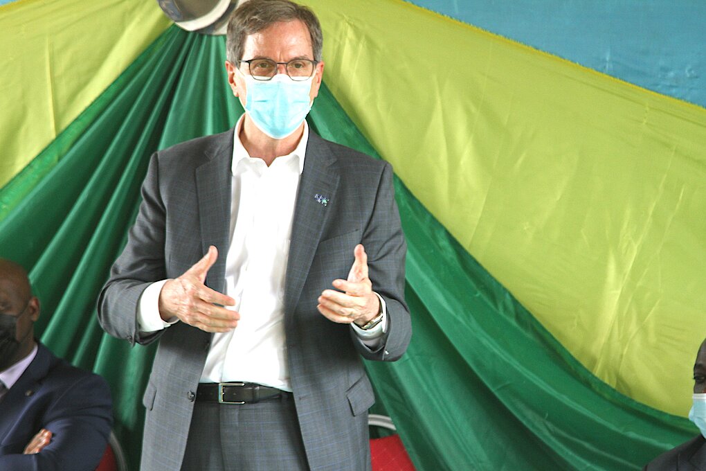 Chief Executive Officer of GPE, Charles North speaking at EP Tumba in Rulindo District
