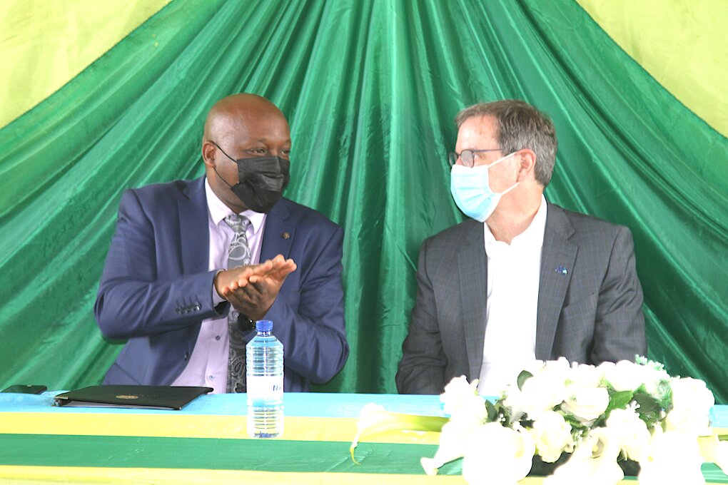 DG REB, Dr. Nelson Mbarushimana (left) chatting with CEO GPE, Charles North.
