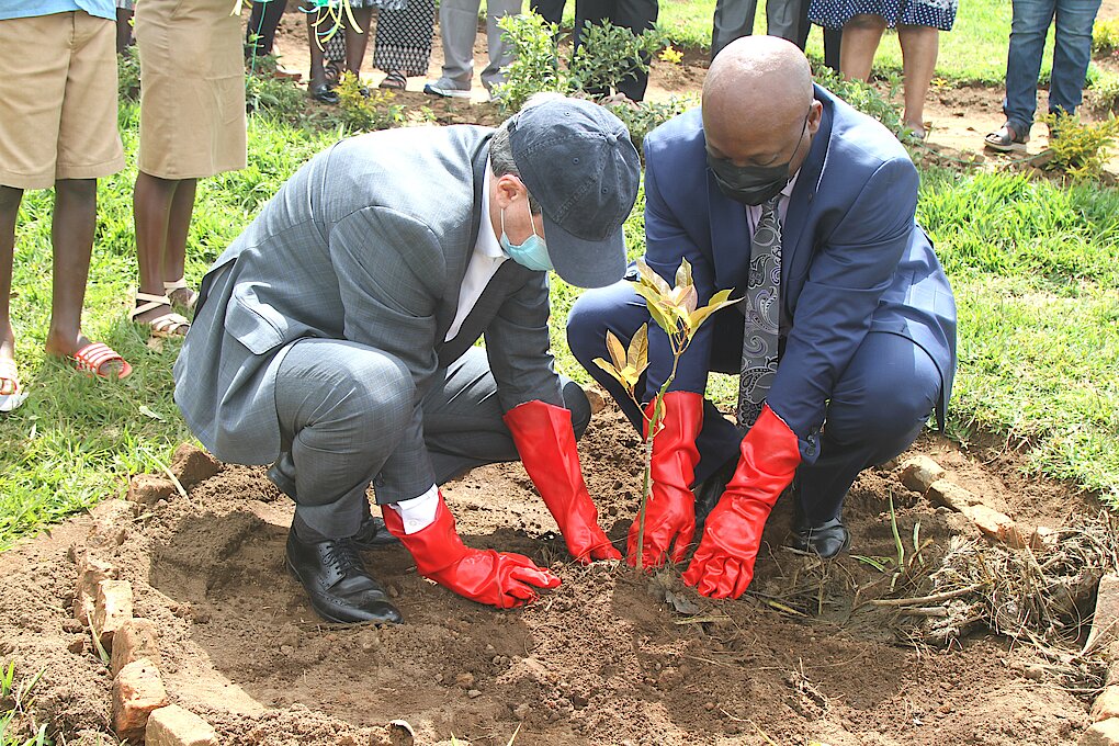 The Chief Executive officer of Global Partnership for Education together with the Director General of Rwanda Basic Education Board, Dr. Nelson Mbarushimana planted a fruit tree for as to support the school feeding program.